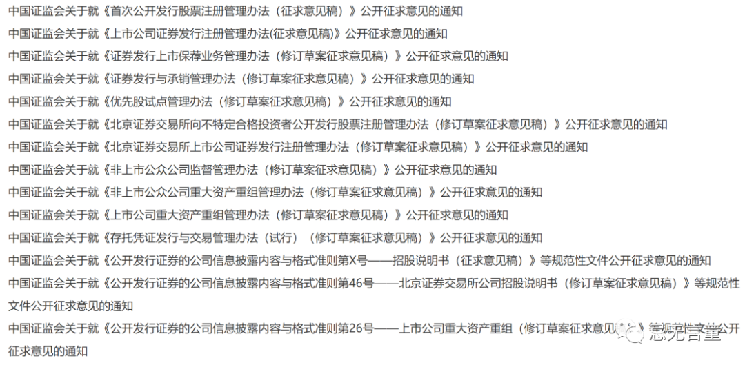 兔年TWO月,大事来了——资本市场全面注册制改革!网传的小作文乐亭了。与此同时公布的是证监会制定的相关制度规则草案十四项,如下截图: