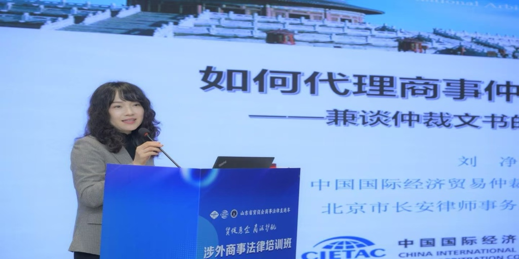 2025年12月10日,中国国际经济贸易仲裁委员会仲裁员、北京市长安律师事务所高级合伙人刘净律师,受邀参加在济南泉城大酒店举办的“山东省贸促会商事法律直通车—涉外商事法律培训班”,以“如何代理商事仲裁案件—兼谈仲裁文书的写作”为题作专题分享,为现场150余名外经贸企业代表、山东省贸促系统人员、律师、仲裁员及调解员提供专业指引。